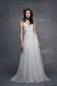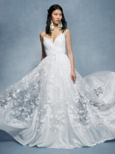 The modern bride can embrace an ethereal look thanks to Marchesa’s bridal collections. The collection has an aura of enchantment in natural hues and classic, romantic designs. Each dress celebrates timeless elegance and is both opulent and demure. The exquisite hand-beaded items are genuine works of art.